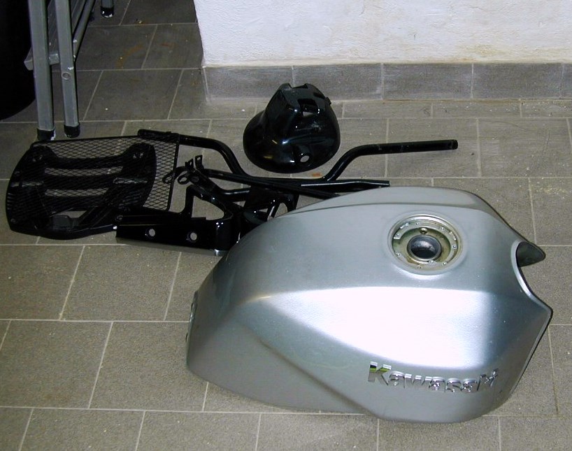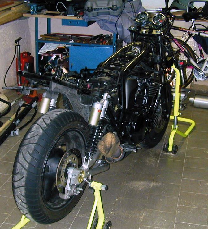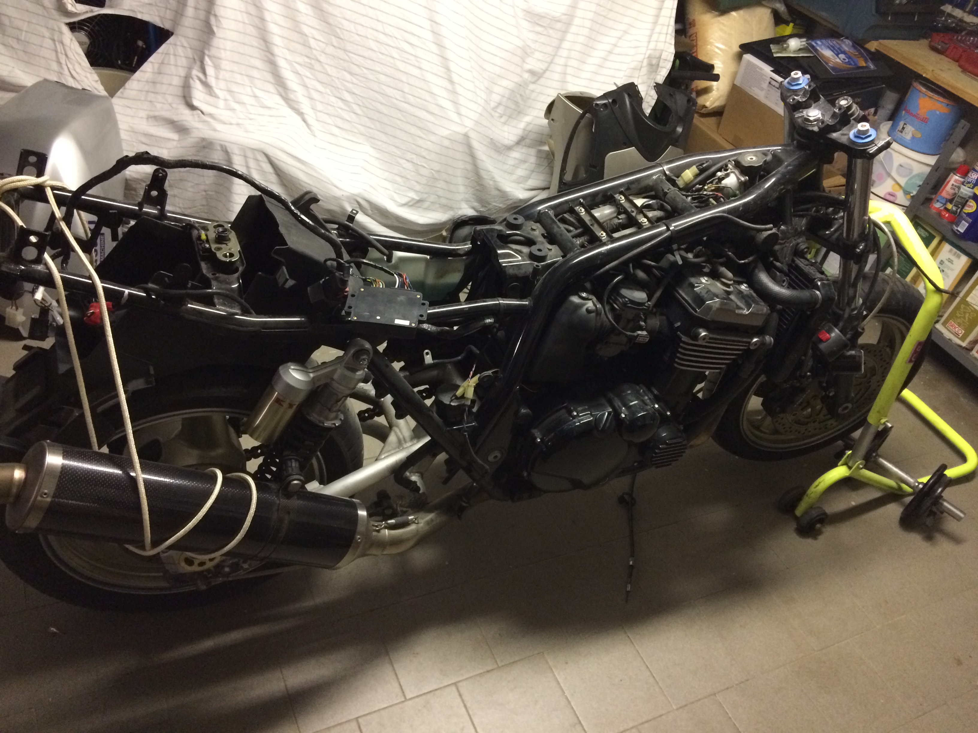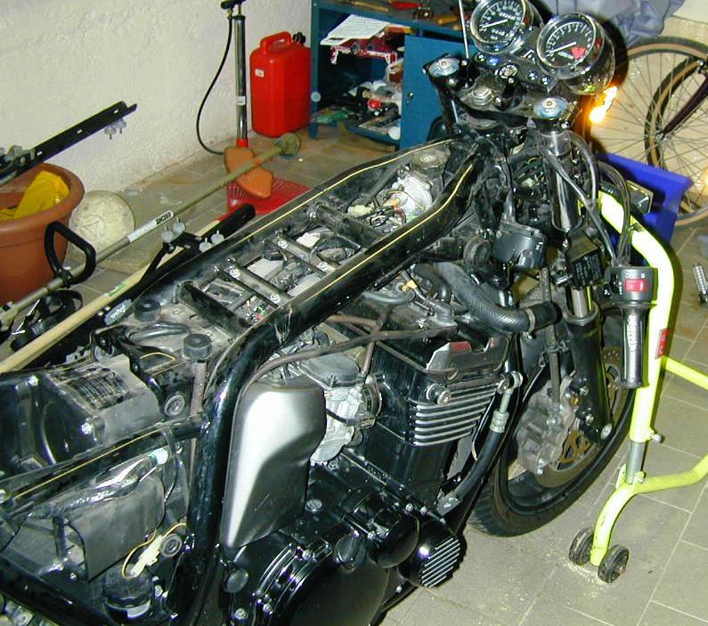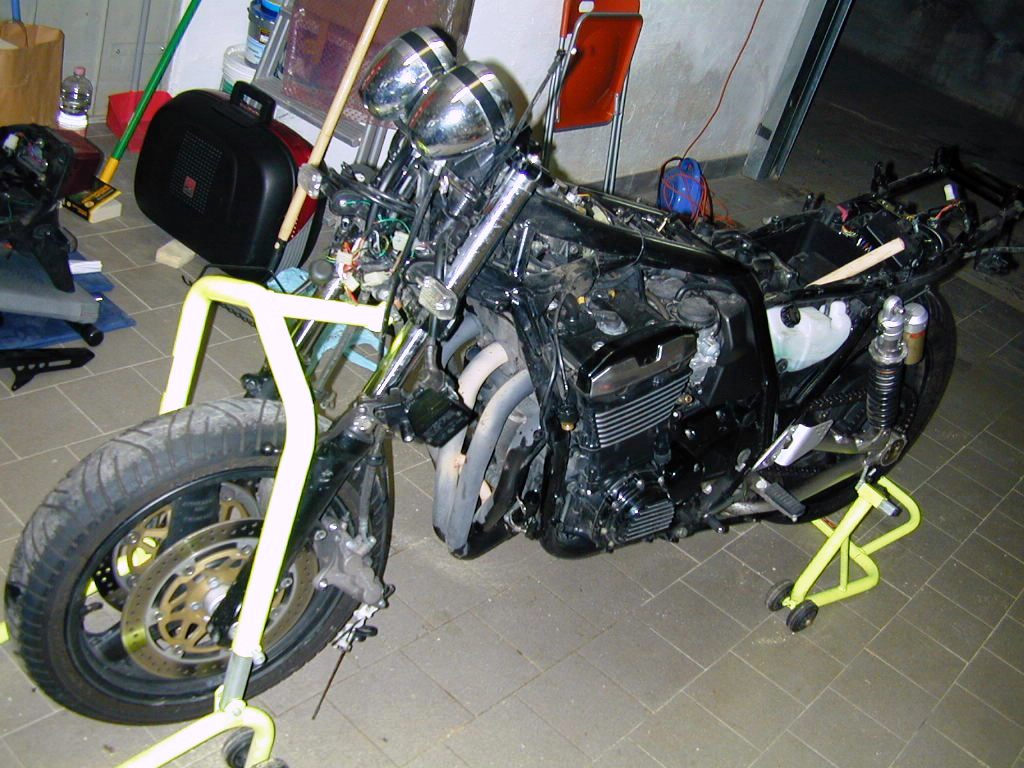 Metto la ZRX sui cavalletti ed inizio (previa anestesia totale) la delicata fase di smontaggio.